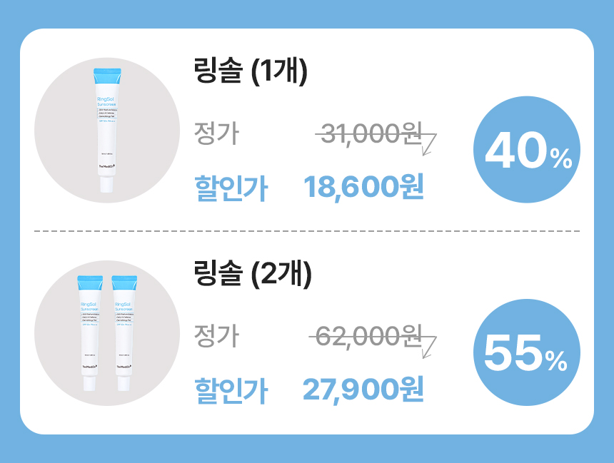 | 성분 | 해수, C12-15알킬벤조에이트, 폴리메틸실세스퀴옥세인, 프로판다이올, 에칠헥실살리실레이트, 호모살레이트, 사이클로펜타실록세인, 정제수, 메칠렌비스-벤조트리아졸릴테트라메칠부틸페놀, 폴리실리콘-15, 나이아신아마이드, 비스-에칠헥실옥시페놀메톡시페닐트리아진, 글리세린, 디에칠아미노하이드록시벤조일헥실벤조에이트, 폴리솔베이트60, 부틸렌글라이콜, 다이프로필렌글라이콜, 데실글루코사이드, 하이드록시아세토페논, 아크릴레이트/C10-30알킬아크릴레이트크로스폴리머, 트로메타민, 소듐아크릴레이트/소듐아크릴로일다이메틸타우레이트코폴리머, 카프릴릴글라이콜, 아이소헥사데칸, 다이소듐이디티에이, 티트리잎오일, 아데노신, 폴리솔베이트80, 프로필렌글라이콜, 잔탄검, 솔비탄올리에이트, 마그네슘아스코빌포스페이트, 다이포타슘글리시리제이트, 티트리잎수, 알로에베라잎추출물, 참마뿌리추출물, 다시마추출물, 제비꽃꽃추출물, 당느릅나무뿌리추출물, 감나무잎추출물, 포도추출물, 커피콩추출물, 호장근뿌리추출물, 잇꽃꽃추출물, 밤껍질추출물, 초피나무열매추출물, 녹차추출물, 약모밀추출물, 1,2-헥산다이올, 흰버드나무껍질추출물, 펜틸렌글라이콜, 에틸헥실글리세린 |
