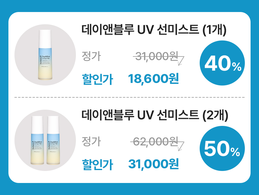 | 성분 | 정제수,에칠헥실살리실레이트,페닐벤즈이미다졸설포닉애씨드,트로메타민,비스-에칠헥실옥시페놀메톡시페닐트리아진,디에칠아미노하이드록시벤조일헥실벤조에이트,부틸옥틸살리실레이트,호모살레이트,아이소헥사데칸,폴리에스터-5,메틸메타크릴레이트크로스폴리머,테레프탈릴리덴디캠퍼설포닉애씨드,프로판다이올,마이크로크리스탈린셀룰로오스,카프릴릴글라이콜,셀룰로오스검,에틸헥실글리세린,다이프로필렌글라이콜,다이소듐이디티에이,부틸렌글라이콜,당근씨오일,센티드제라늄꽃오일,오죽잎추출물,하이드롤라이즈드삼색제비꽃추출물,1,2-헥산다이올,다마스크장미꽃오일,부시클로버잎/줄기추출물,녹두씨추출물,달맞이꽃꽃추출물,당느릅나무뿌리추출물,대왕소나무잎추출물,칡뿌리추출물,에틸헥산다이올,만주자작나무수액, 소리쟁이뿌리추출물 |