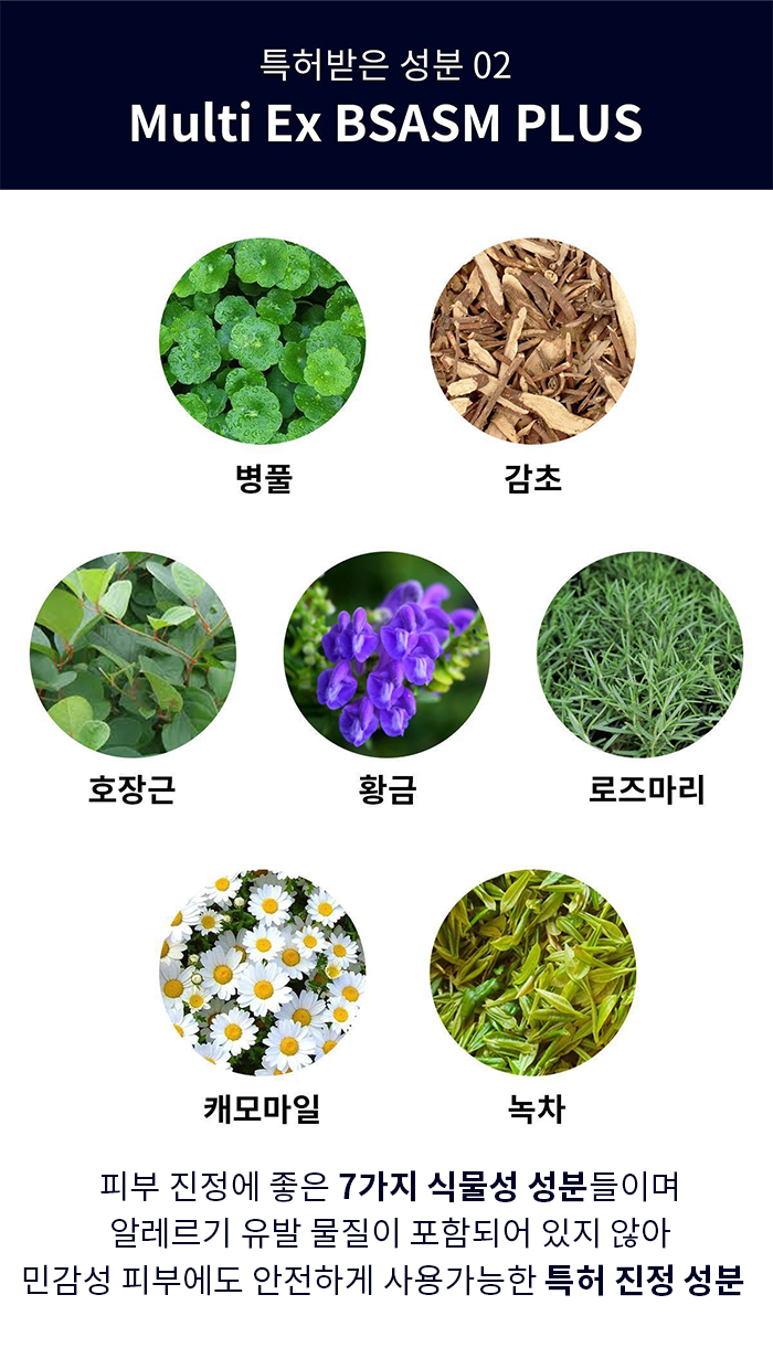 | 성분 | 해수, 다이프로필렌글라이콜, 부틸렌글라이콜, 1,2-헥산다이올, 글리세린, 베타인, 트레할로오스, 판테놀, 글리세릴아크릴레이트/아크릴릭애씨드코폴리머, 알란토인, 프로판다이올, 피브이엠/엠에이코폴리머, 꿀추출물, 잔탄검, 병풀추출물, 동백나무꽃추출물, 호장근뿌리추출물, 황금추출물, 뽕나무열매추출물, 석류추출물, 무화과추출물, 은행추출물, 스페인감초뿌리추출물, 녹차추출물, 파파야열매추출물, 하이드롤라이즈드하이알루로닉애씨드, 사과추출물, 로즈마리잎추출물, 마트리카리아꽃추출물, 카프릴릴글라이콜, 비피다발효용해물, 에틸헥실글리세린, 시카카이열매추출물, 히솝추출물, 타마린드열매추출물, 아스퍼질러스발효물, 보스웰리아검 |