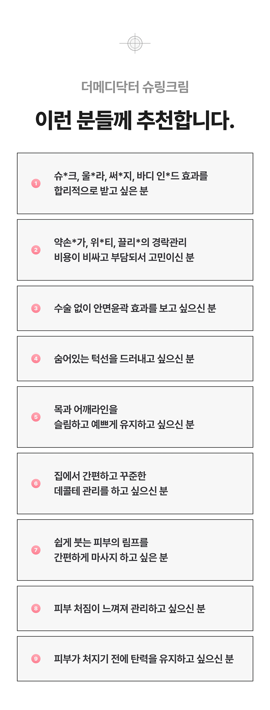 | 성분 | 편백수,아이소프로필미리스테이트,정제수,글리세린,1,2-헥산다이올,나이아신아마이드,폴리솔베이트60,세테아릴알코올,글리세릴스테아레이트,팔미틱애씨드,스테아릭애씨드,카보머,트로메타민,하이드롤라이즈드해면,부틸렌글라이콜,에틸헥실글리세린,옥수수커넬추출물,아데노신,하이드롤라이즈드치자추출물,하이드롤라이즈드맥아추출물,하이드롤라이즈드삼색제비꽃추출물,다이소듐이디티에이,프룩탄, 글루코오스,하이드롤라이즈드콜라겐,참산호말추출물,카프릴릴글라이콜,백설차잎추출물,바실러스/소이빈발효추출물,아세틸헥사펩타이드-8 |